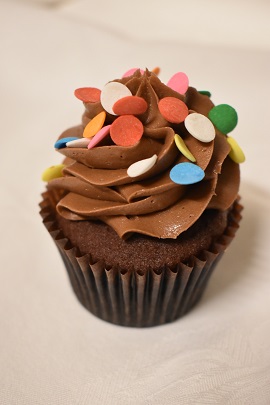 Chocolate cupcake with chocolate icing and confetti. Minimum order of 6